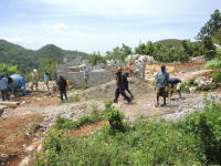 «Pwojè men kontre» operates an orphanage for currently 72 orphans, a school for now 346 children, their own agriculture, emergency relief and currently moves to a new location and creates new buildings. In addition, recently a small hospital together with an American assistant team and doctor is operated as well ("Unfortunately, they were only able to treat about 75 patients of the daily 150 patients, although we had worked right into the evening darkness.").