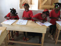 But the funding of the teaching for now 284 pupils causes great problems, especially for the teachers' salaries, to split the overcrowded classes. Each year in the summer holidays are the new registrations for the new school year. Every time, «Pwojè men kontre» has to reject many students because the classes are overcrowded. Dr. med. Anke Brügmann wrote at the beginning of the school year 2015: "Sometimes the parents are crying in front of me when they get no place for their kids. Some children are bedraggled or malnourished."